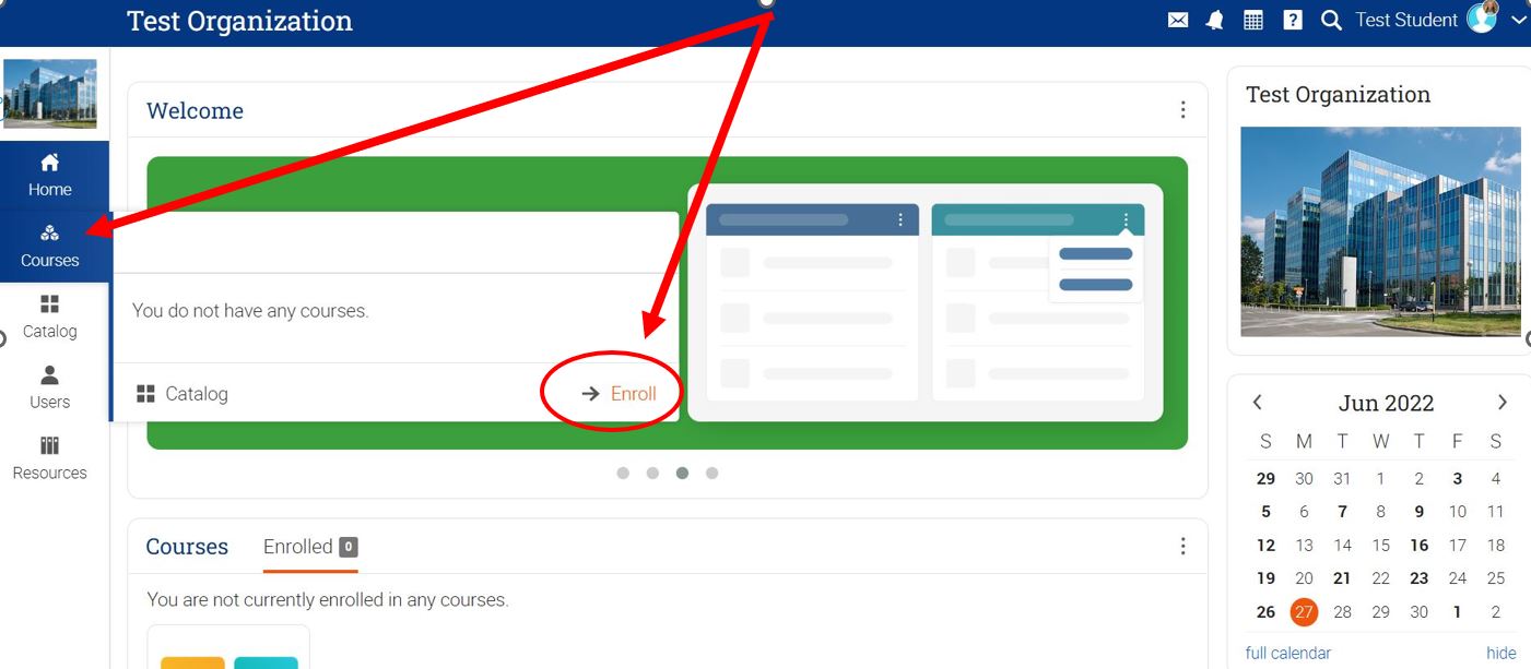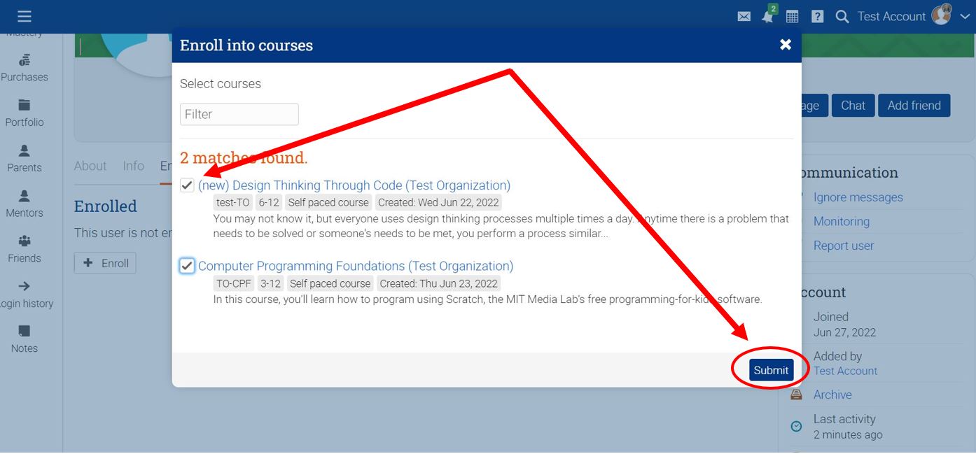 - Use the search bar or scroll down to navigate to the course or courses you wish to enroll the student in.