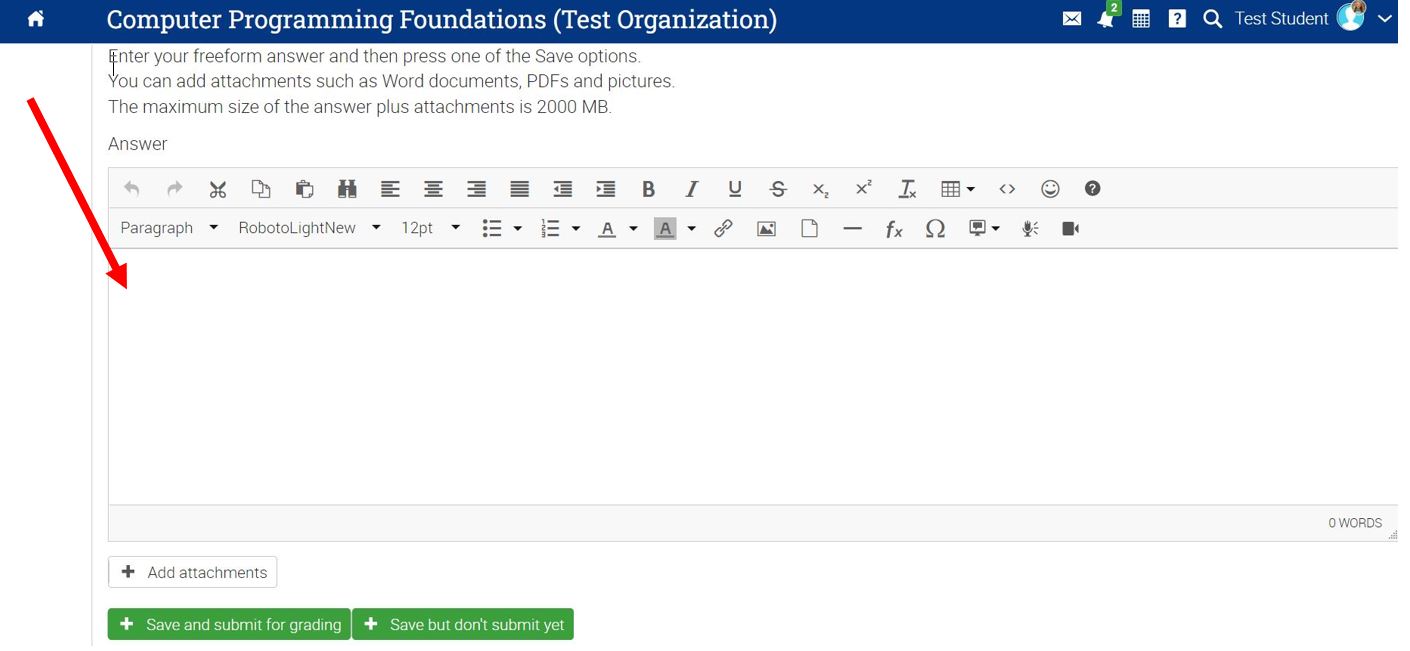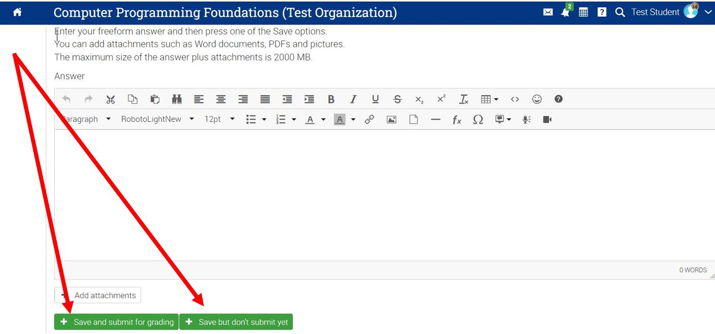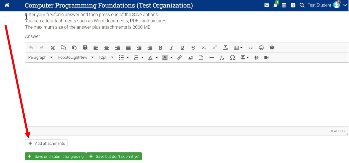 - Add attachments of photos or a copy of your answer by clicking "+add attachments."