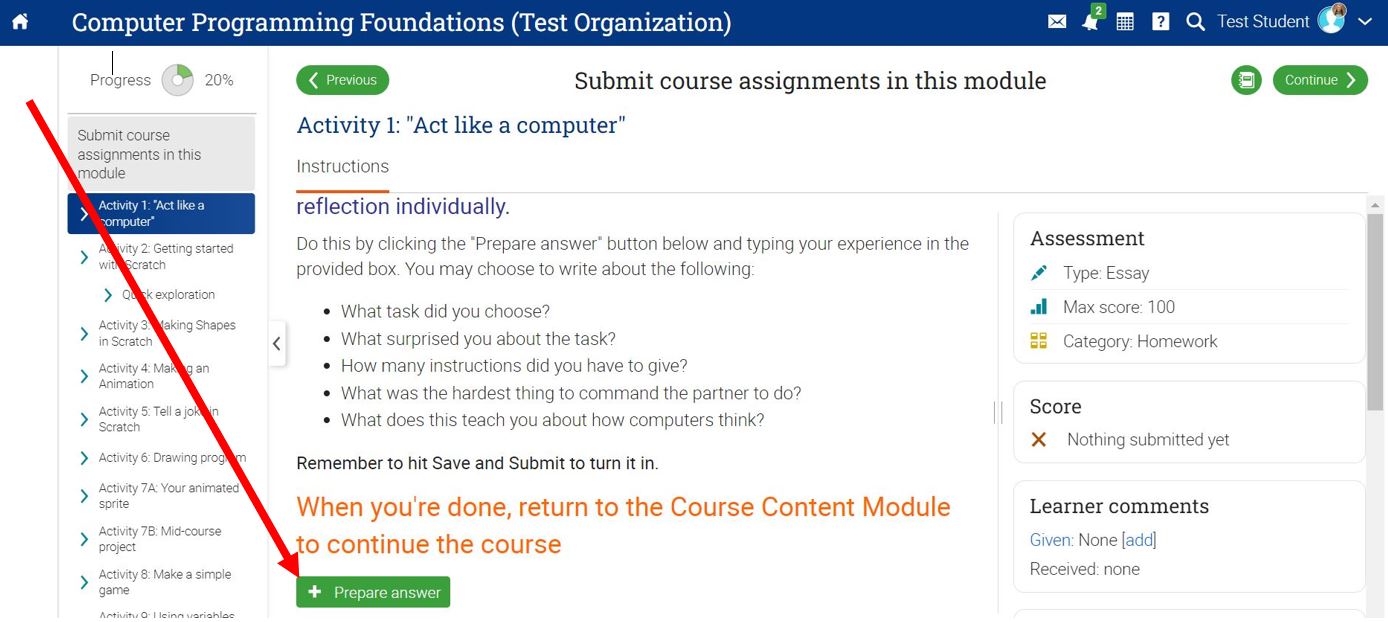 - In K-8 courses your assignment will be located in the “Course assignments” module, 9-12 course assignments will be mixed in with your course content.