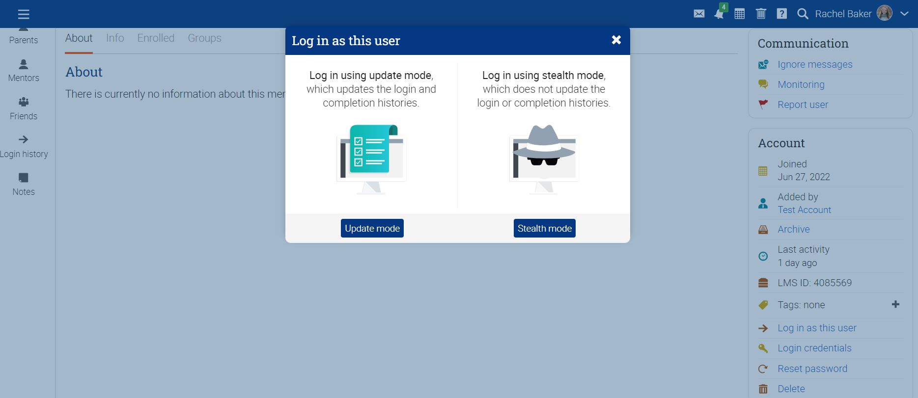 - Click on the “log in as user” button found near the bottom right side of the screen.