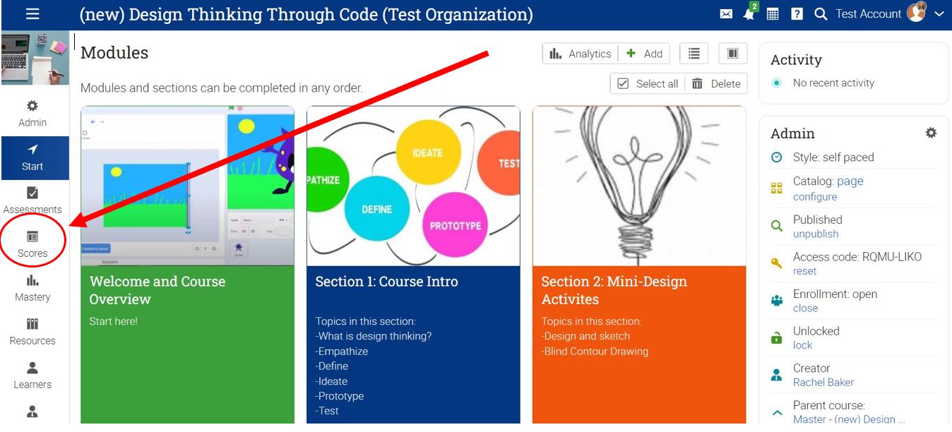 - Click on the "Scores" tab found in the left-hand toolbox.